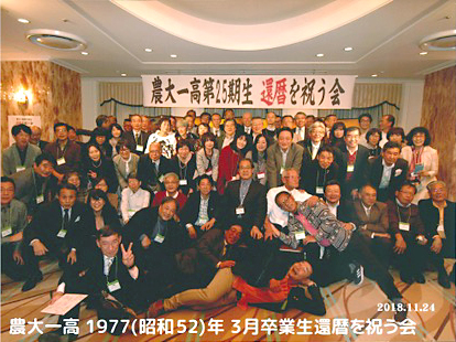 母校農大一高に入学してから随分と長い歳月が過ぎたものである。受付では誰だか判らず、43年前の受付嬢は、名前を聞いて驚く連続であった。えーウソ!わからなかったー! 1年の時、2年の時一緒のクラスだったよねー!の声と、何故か歓声が挙がった。受付のステージだけで充分楽しめる1時間であった。皆、変身し過ぎだよ、今日はハロウィンじゃないんだから。